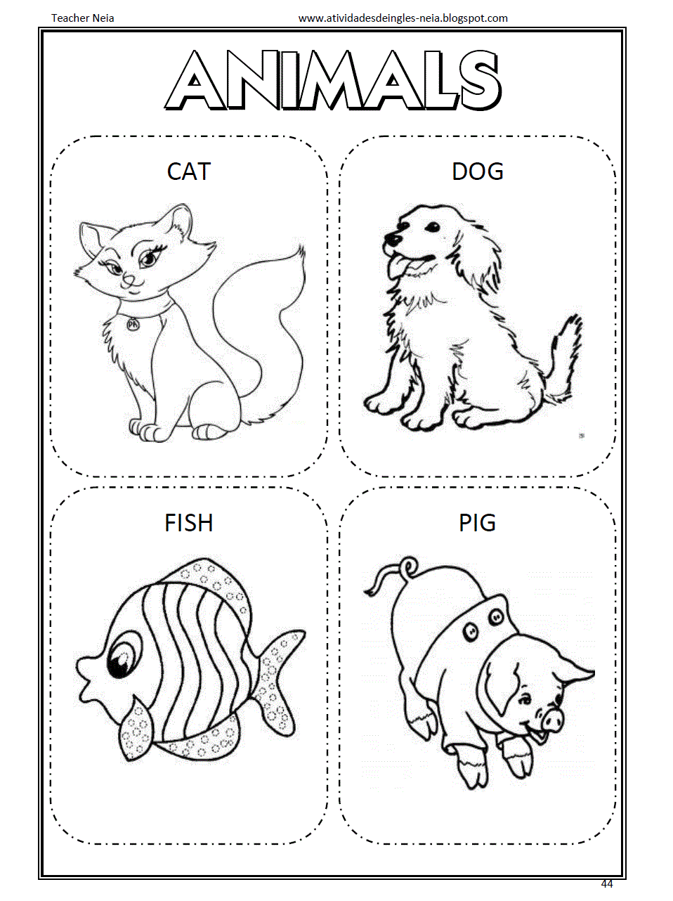 Atividades de Inglês Sobre os Animais - Com Desenhos para Colorir